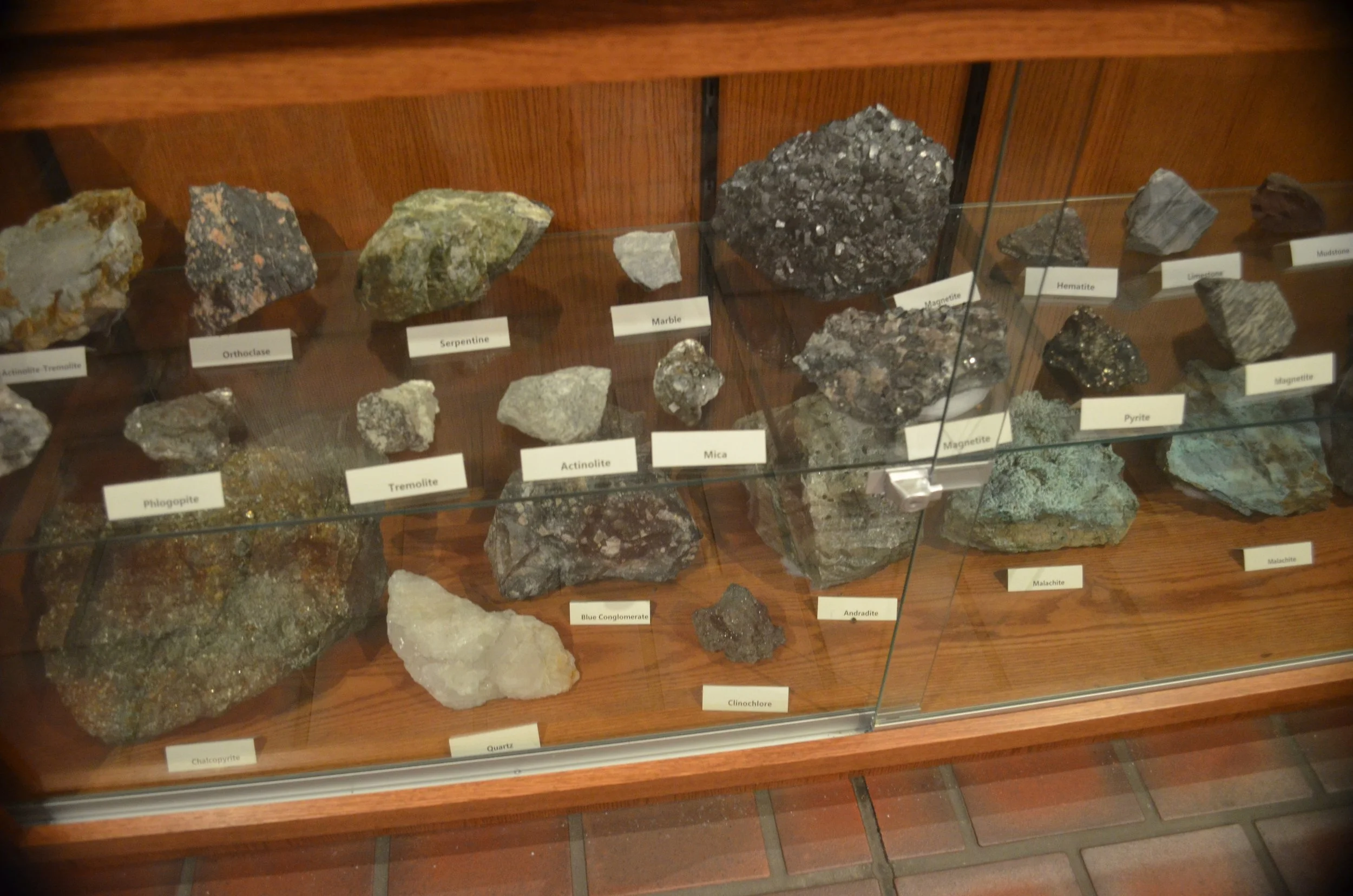 A display case in the museum showing minerals mined at the furnace site.